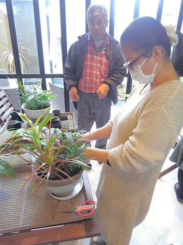 本日3月26日(日)ショップのインナーテラスでミニ観葉植物の寄せ植えワークショップを開催しました!