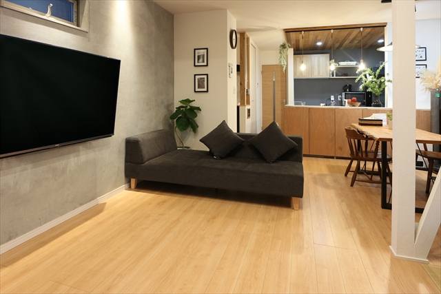 カウチとソファをそれぞれダイニングテーブルに向けて配置すれば
