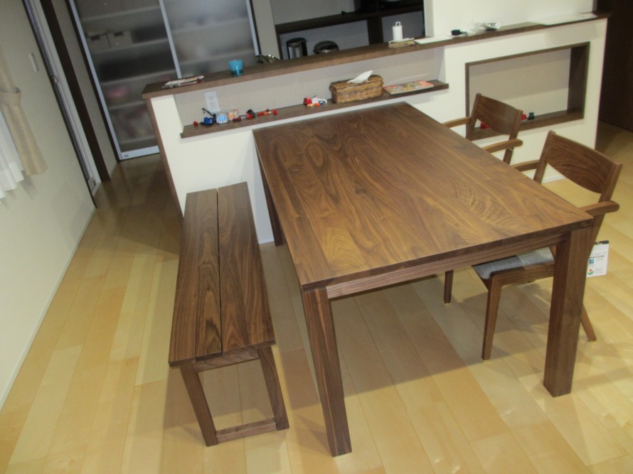 到着を心待ちにされていたのはこちらのダイニングテーブルとチェア・・ 素材は、ウォールナットをチョイスしていただきました。